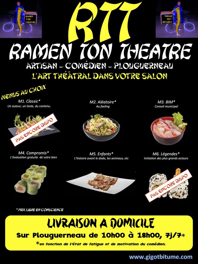 RTT – Ramen Ton Théâtre ActuPar Ronan Le Fur8 mars 2021Nouveau service de livraison de menus à domicile à Plouguerneau.